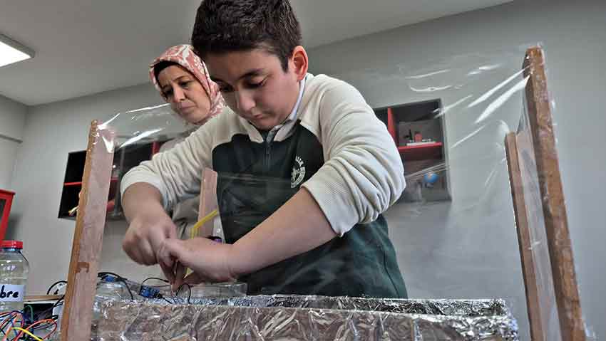 Bahçeşehir Bilim ve Sanat Merkezi öğrencisi 11 yaşındaki Muhammet Zahid Sert, çevreyi tehdit eden zararlı tarım ilaçlarına karşı geliştirdiği yenilikçi projesiyle dikkatleri üzerine çekti. İklim değişikliklerine yol açan sera gazı salınımını da en aza indirecek bu çalışmada, sıvı gübre temiz su ile birlikte sera içindeki toprağa veriliyor. Toprak belirli bir sıcaklığa ulaştığında ise zararlı böcek ve haşereleri uzaklaştıran uçucu yağ buharlaşıyor ve sera içine yayılıyor.