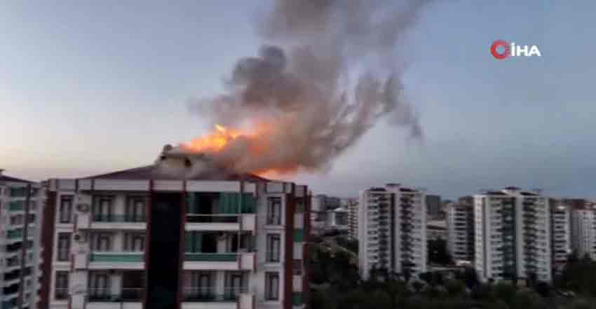 Yangın, akşam saatlerinde Fırat Mahallesi 564’üncü Sokakta bulunan 13 katlı apartmanda çıktı. Binanın çatı katında çıkan yangın hızla yayılırken, merdiven boşlukları dumanla kaplandı. Endişe yaşayan bina sakinlerinin ihbarı üzerine adrese çok sayıda itfaiye, sağlık ve polis ekipleri sevk edildi. Merdivenleri kaplayan duman nedeniyle mahsur kalan bina sakinlerinin sepetli vinç yardımıyla çıkarılmasına karar verildi. Yakındaki bir nakliye şirketinin sepetli vincinin de yardımıyla 1’i bebek 38 kişi binadan tahliye edildi. Dumandan etkilenenlere ambulanslarda ilk müdahaleleri yapıldı. 1’i bebek 23 kişi hastaneye kaldırılarak tedaviye alındı. Yaralılardan birinin hayati tehlikesinin olduğu öğrenildi.