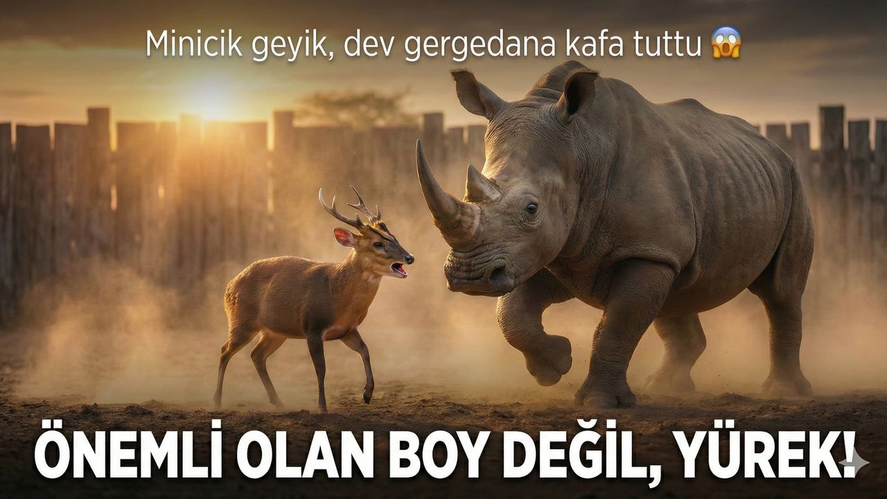 Polonya'nın Wroclaw Hayvanat Bahçesi'nde (Zoo Wrocław) kaydedilen görüntüler sosyal medyada izlenme rekorları kırıyor. Sadece 13 kilogram ağırlığındaki bir Çin munçak geyiği, kendisinden yüz kat daha ağır olan 1.7 tonluk gergedan "Maruska"ya korkusuzca saldırdı.