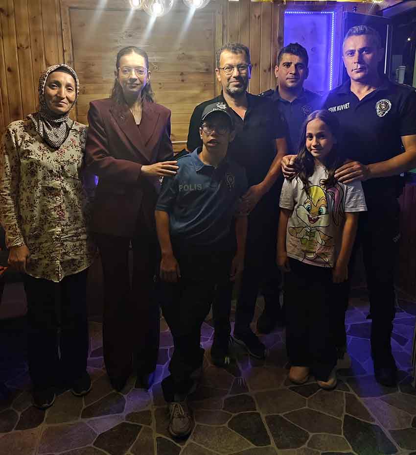 Bolu'nun Mudurnu ilçesinde yaşayan özel birey 14 yaşındaki Efe Abduş'un polis olma hayali, Mudurnu Kaymakamı Ceyda Durmaz'ın sürpriziyle gerçeğe dönüştü. Mudurnu İlçe Emniyet Müdürlüğü'nde düzenlenen sürpriz programda Efe'ye, kendisi için hazırlanan polis üniforması giydirildi. Üniformasını giyen Efe'nin apoletleri, Kaymakam Ceyda Durmaz ve İlçe Emniyet Müdür Vekili Başkomiser Hasan Tokgöz tarafından takıldı. Efe'nin ailesi oğullarına bu mutluluğu yaşatan kurumlara teşekkür etti.