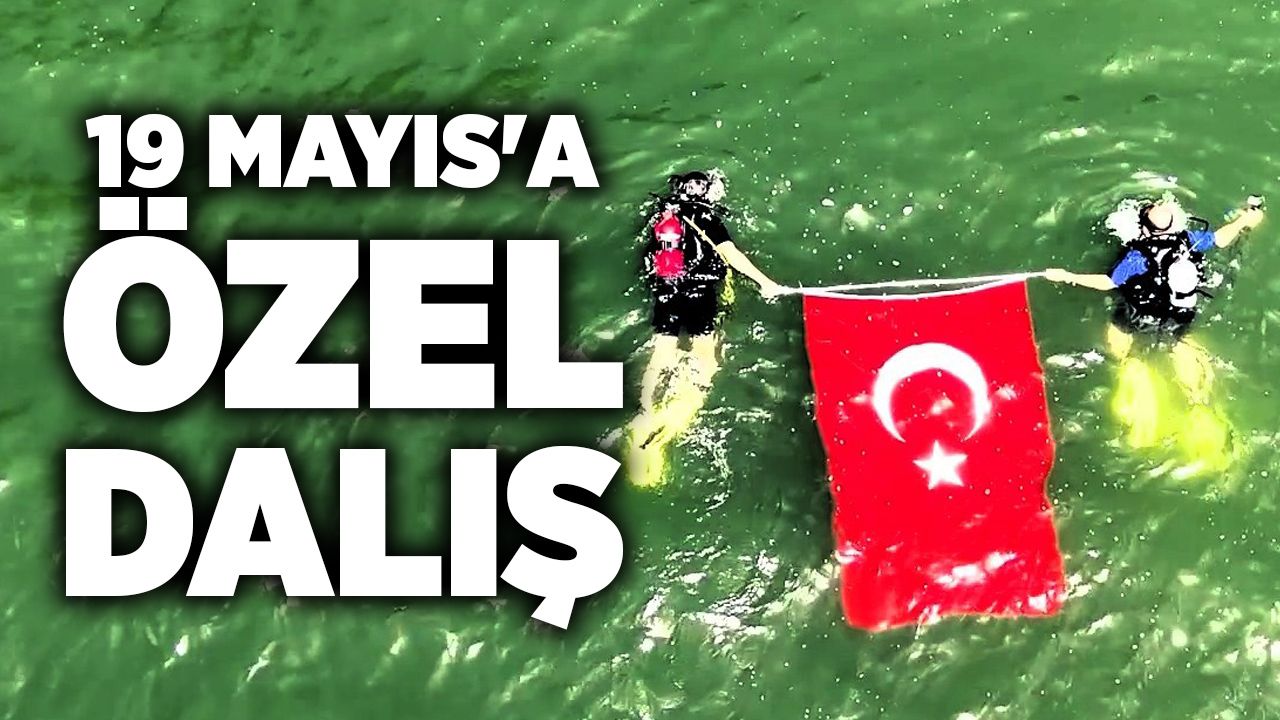 Karabük'ün Ovacık ilçesinde iki dalgıç, 19 Mayıs Atatürk'ü Anma, Gençlik ve Spor Bayramı'nın 106. yılı dolayısıyla Hatipoğlu Göleti'ne dalarak su altında Türk bayrağı açtı.