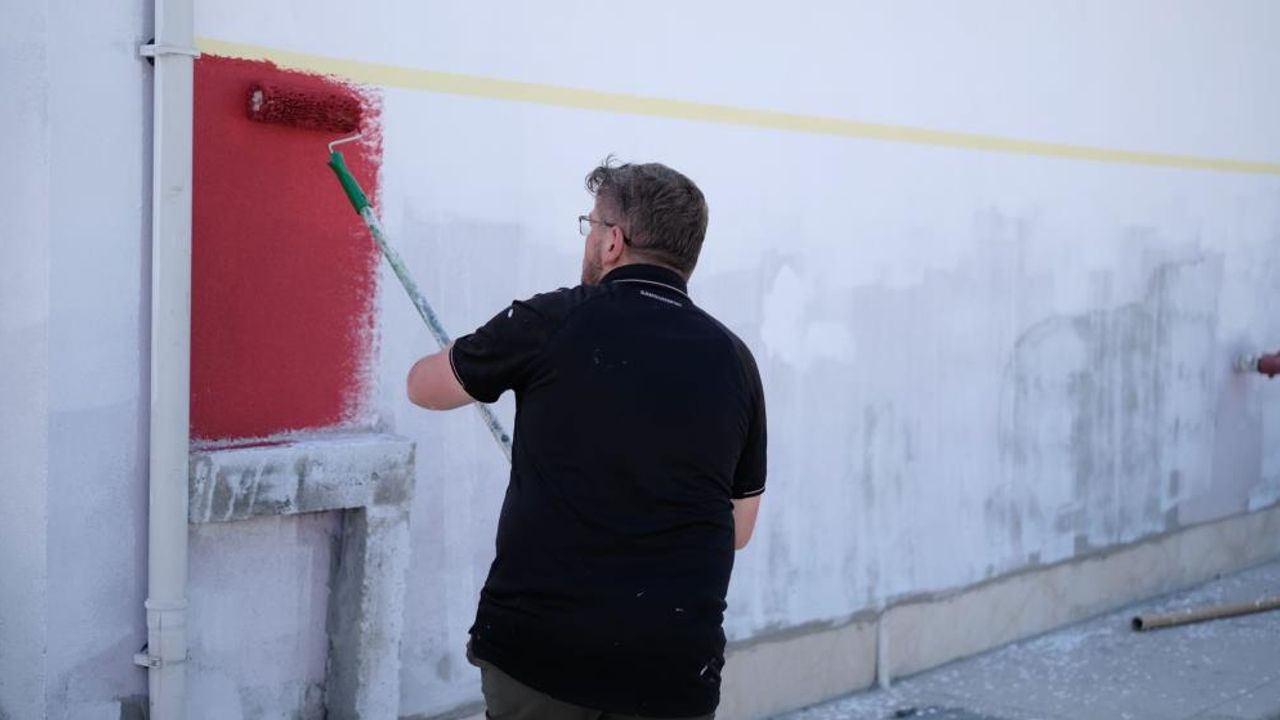 Okulun boyanmasının ardından dernek üyeleri, öğrencilerle birlikte hatıra fotoğrafı çektirdi.