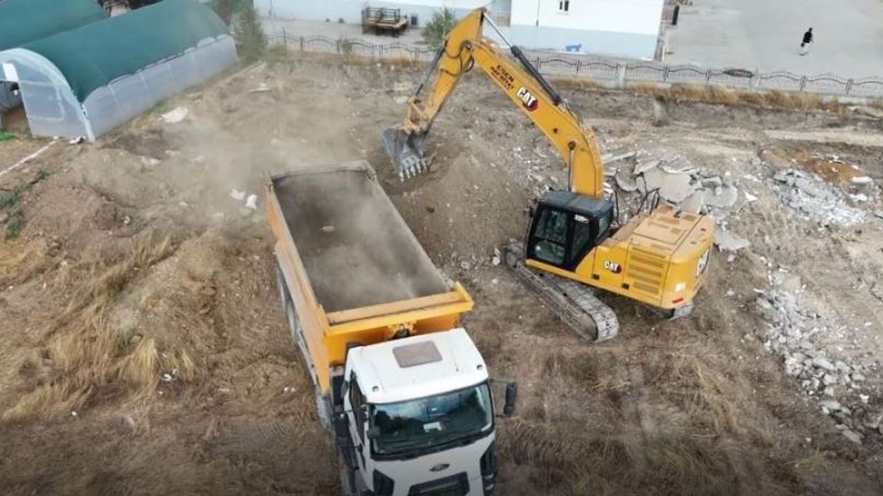 Öte yandan, spor salonun yapılacağı alandaki çalışmalar dron ile görüntülendi.