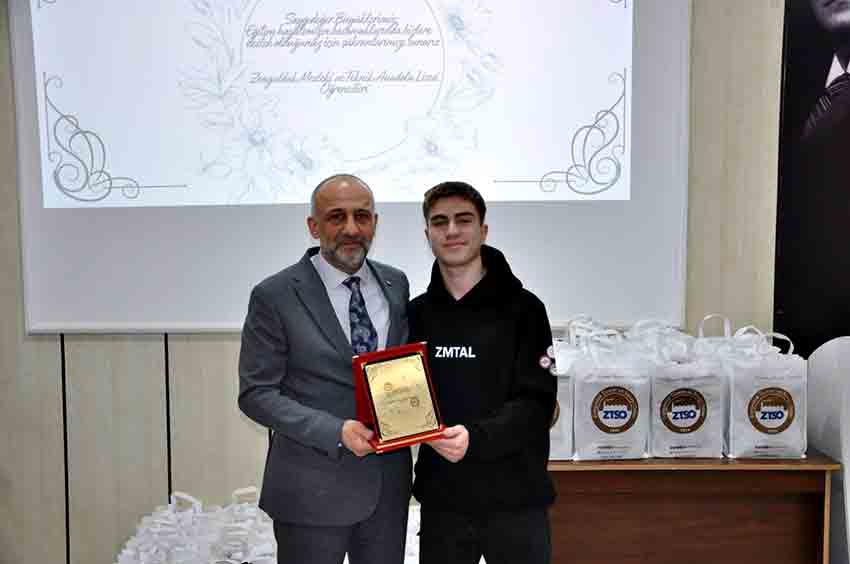 Törenin bitiminde Zonguldak Ticaret ve Sanayi Odası Yönetim Kurulu Başkanı Metin Demir’e öğrenciler tarafından plaket takdim edilerek teşekkür edildi.