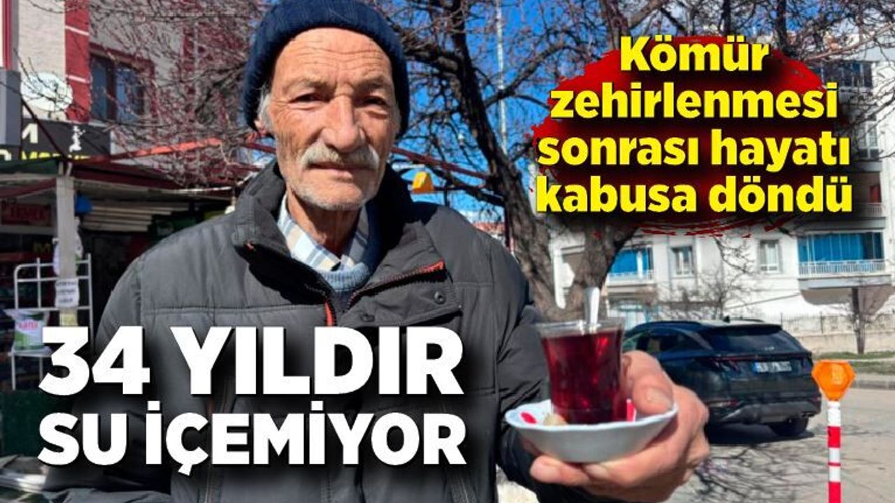 Ankara'da yaşayan 79 yaşındaki Mustafa Akbıyık, 34 yıldır su içemediğini söyledi. İddiaya göre, 1992 yılında sobalı evlerinde eşiyle birlikte kömürden zehirlendikten sonra sudan tiksinen Akbıyık, sadece çay ve gazoz içebiliyor. Akbıyık, bu probleminin bir an önce çözülmesini istediğini ve suya hasret kaldığını belirterek doktorlardan yardım istiyor.