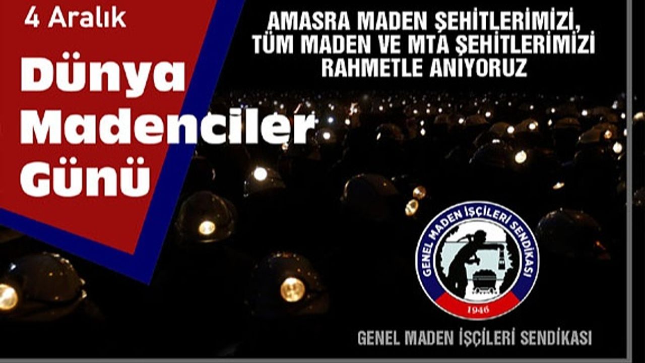 4 Aralık tarihi önce Anadolu'da daha sonra Avrupa ve tüm dünyada "Dünya Madenciler Günü" olarak kutlanmaya başlanmıştır. Ülkemizdeki ve dünyadaki tüm madenci kardeşlerimize dayanışma duygularımızı iletiyoruz.