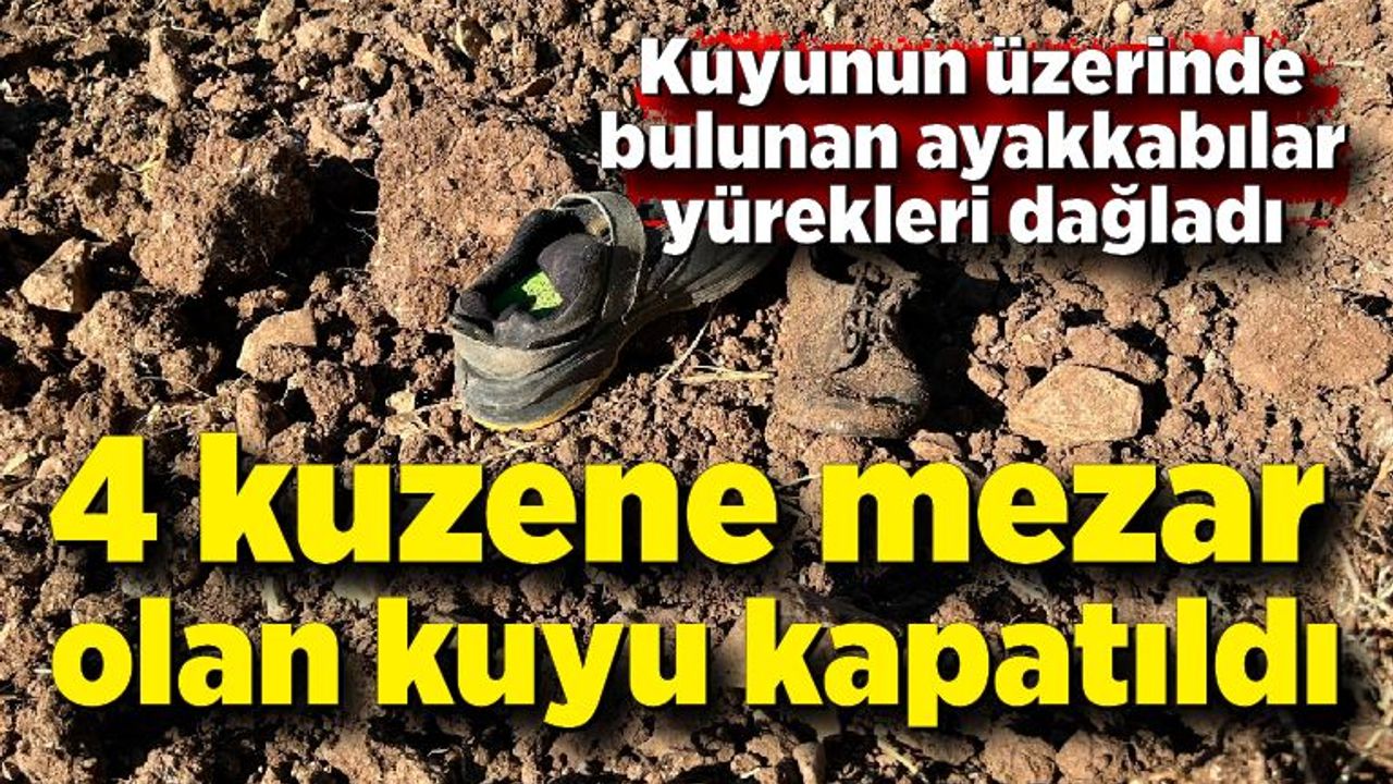 4 kuzene mezar olan kuyu, cansız bedenler çıkartıldıktan sonra toprakla kapatıldı. Alan dron ile görüntülenirken, kapatılan kuyunun üzerinde bulunan ayakkabılar yürekleri dağladı.