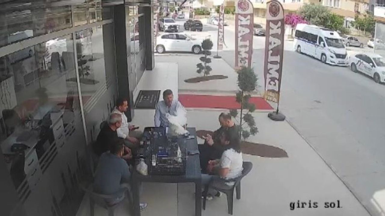 Yaşanan ilginç anlar güvenlik kamerasına da yansıdı. Görüntülerde tavuğun düşmesi ve vatandaşların panikle dağılması net şekilde görüldü.