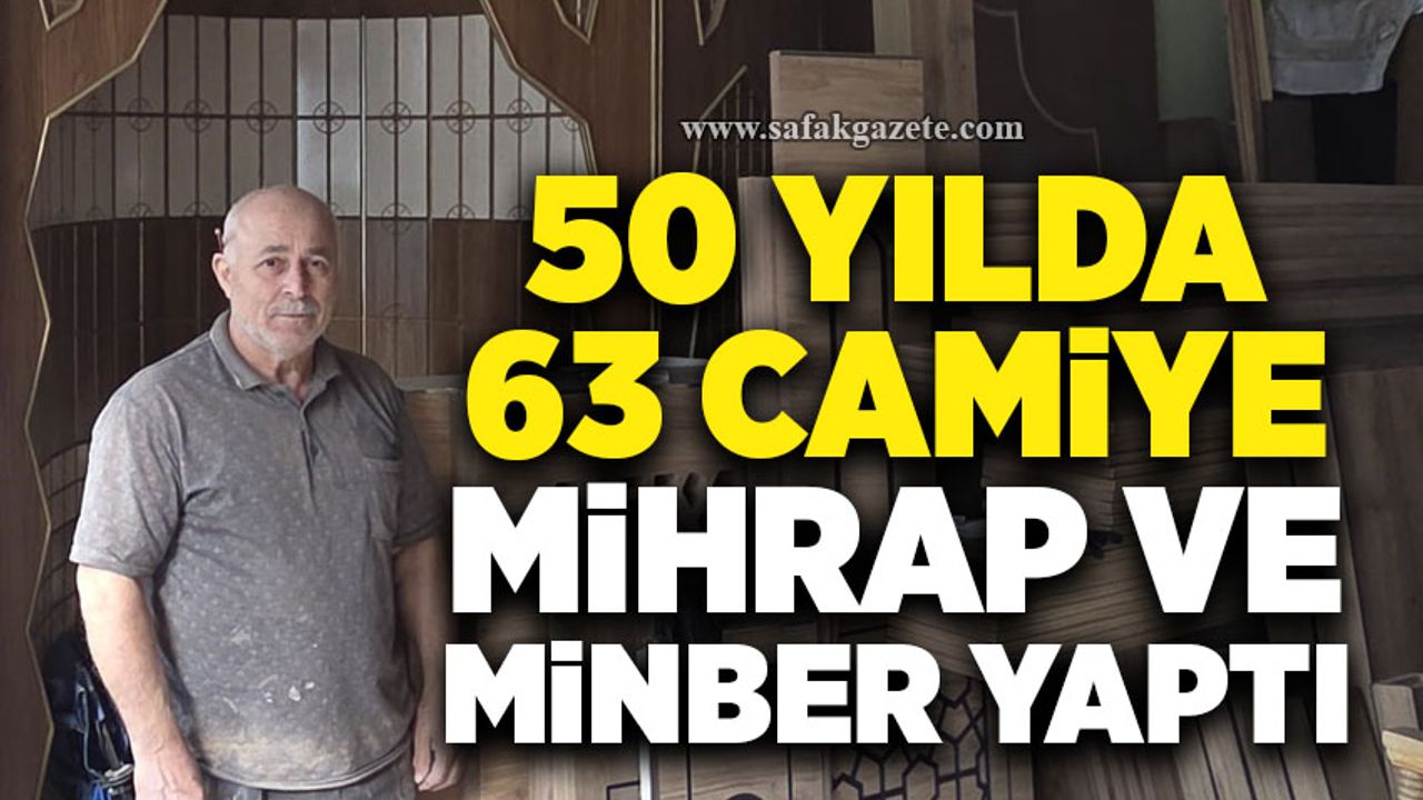 Zonguldak'ın Alaplı ilçesinde 50 yıldır mobilya imalatı yapan 65 yaşındaki Sezgin Gülçiçek, bugüne kadar 63 camiye mihrap, minber ve kürsü yaptı.