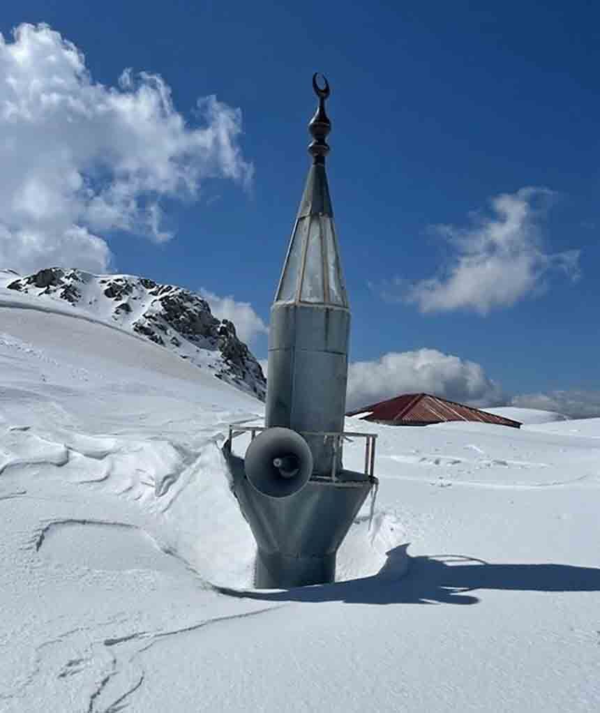 Yoğun kar yağışı nedeniyle yayla yollarının büyük ölçüde kapandığı öğrenilirken, bölgeye ulaşımın ise güçlükle sağlandığı bildirildi. Yaz aylarında yaylacıların buluşma noktası olan cami, kışın ise doğanın zorlu şartlarıyla baş başa kalıyor.