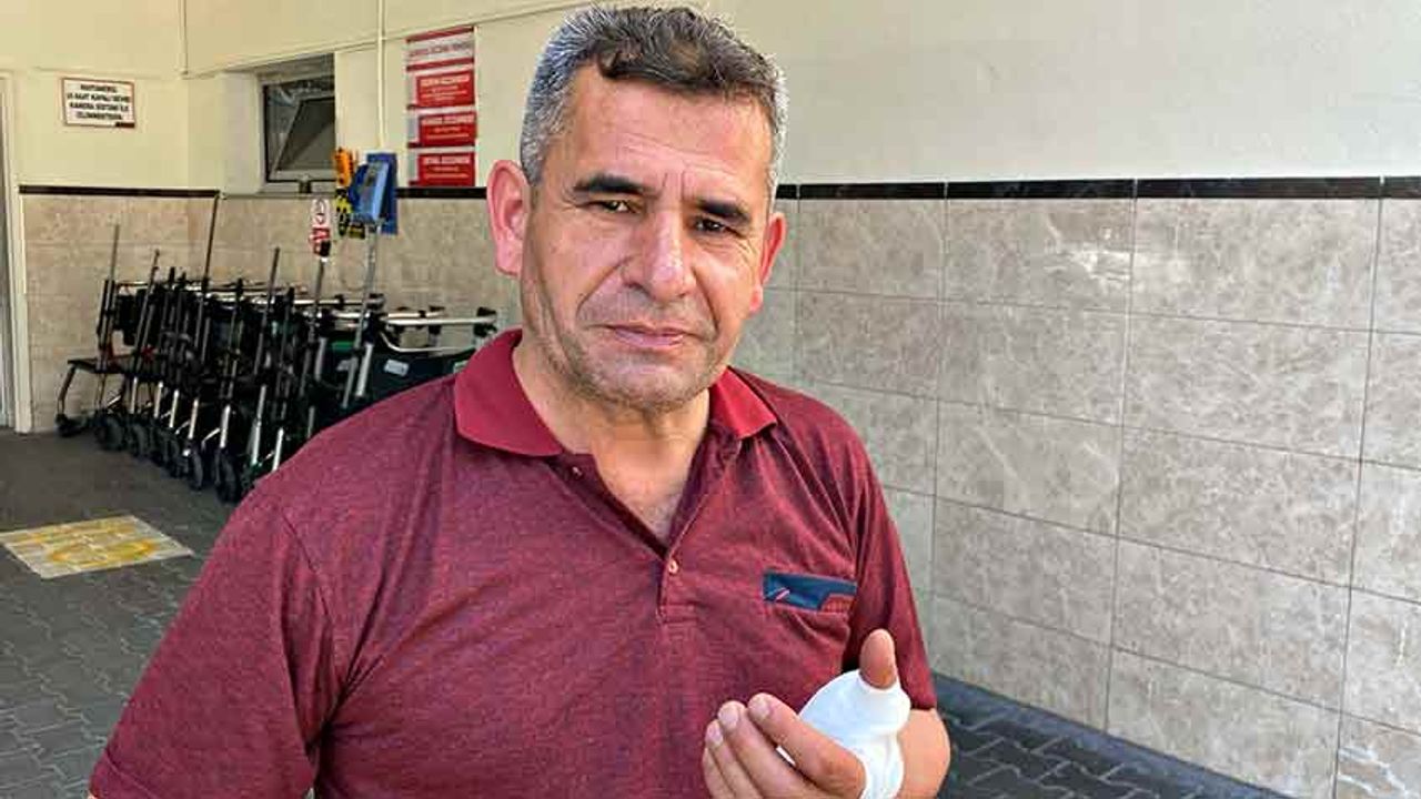 Elini zincire sıkıştıran Ahmet Kocabıyıkoğlu, "Kurbanlık hayvanı tutayım derken elim zincire sıkıştı, doktorlar 4 dikiş attı. 10 yıldan beri hayvan kesim işlemi yapıyorum. İlk defa böyle bir şeyle karşılaştım" dedi.