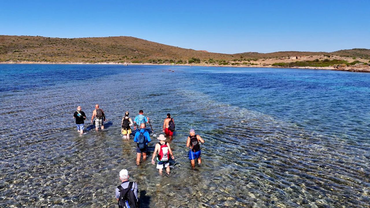 Yürüyüşçüler, Maden Adası’nda bulunan koylarda yüzüp doğayla baş başa vakit geçirdikten sonra aynı güzergâhı kullanarak Cunda Adası’na geri döndü. Sadece belirli dönemlerde ve uygun su seviyesi şartlarında yapılabilen bu özel yürüyüş, katılımcılara eşsiz bir deneyim sunarak doğayla bütünleşmenin en sıra dışı yollarından birini gösterdi.