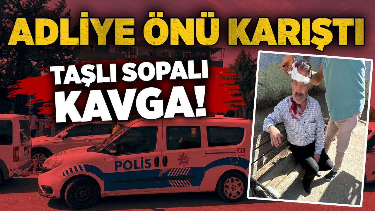 Şanlıurfa’nın Birecik ilçesinde, akraba iki aile arasında adliye önünde çıkan taşlı sopalı kavgada 5 kişi yaralandı.
