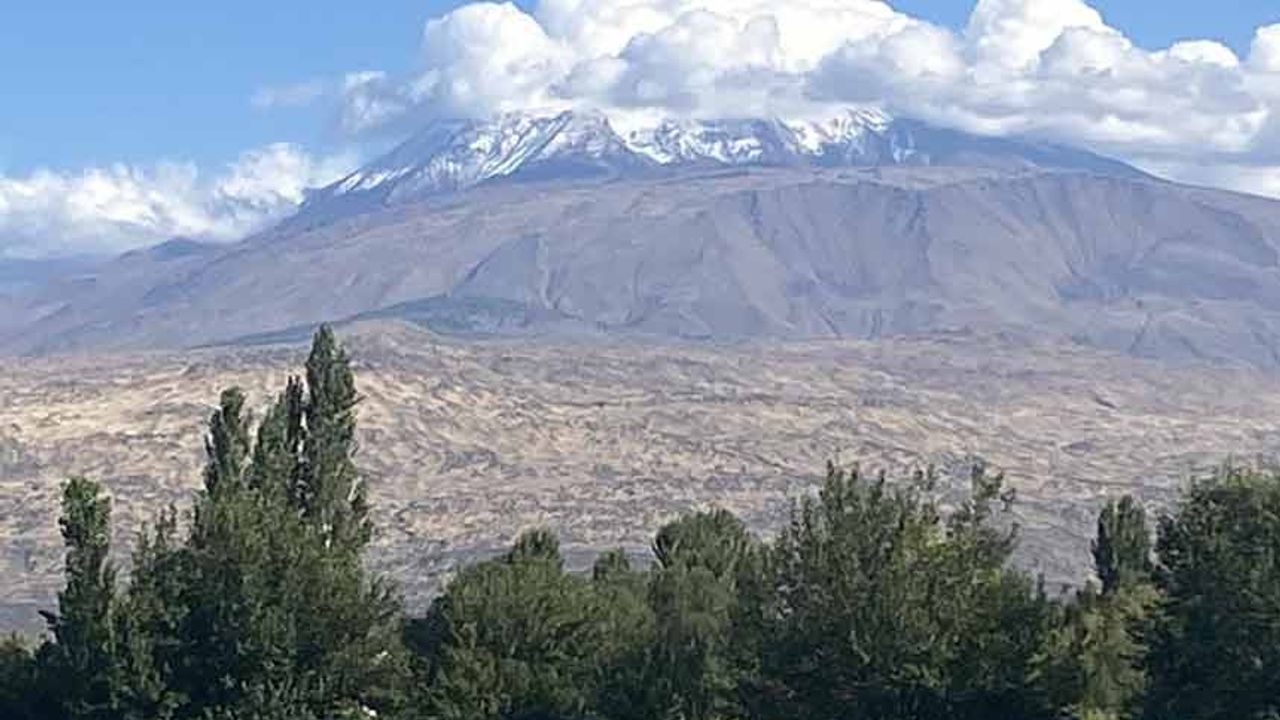 Ağrı Dağı'na yağan kar, ovanın yeşili ile birleşerek kartpostallık görüntüler oluşturdu.