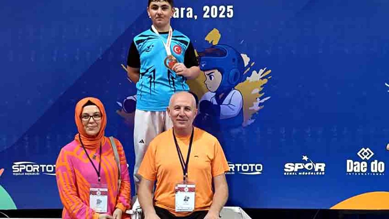 Minikler Türkiye Taekwondo Şampiyonası'nda Düzceli sporcular derece yapmaya devam ediyor. Antrenörlüğünü Ergün Öter'in yaptığı genç sporcu, çıktığı yarı final maçında birinci olan rakibine yenilerek bronz madalyanın sahibi oldu.