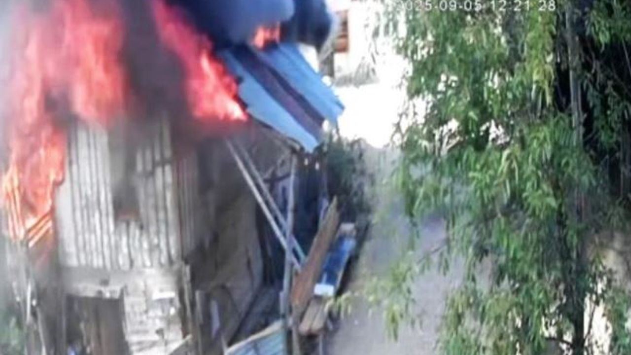 Görüntülerinde, ahşap yapının çatı kısmından dumanların yükseldiği, yardıma gelen bir kişinin pencerelere merdiven dayayarak evin içini kontrol ettiği anlar yer aldı.