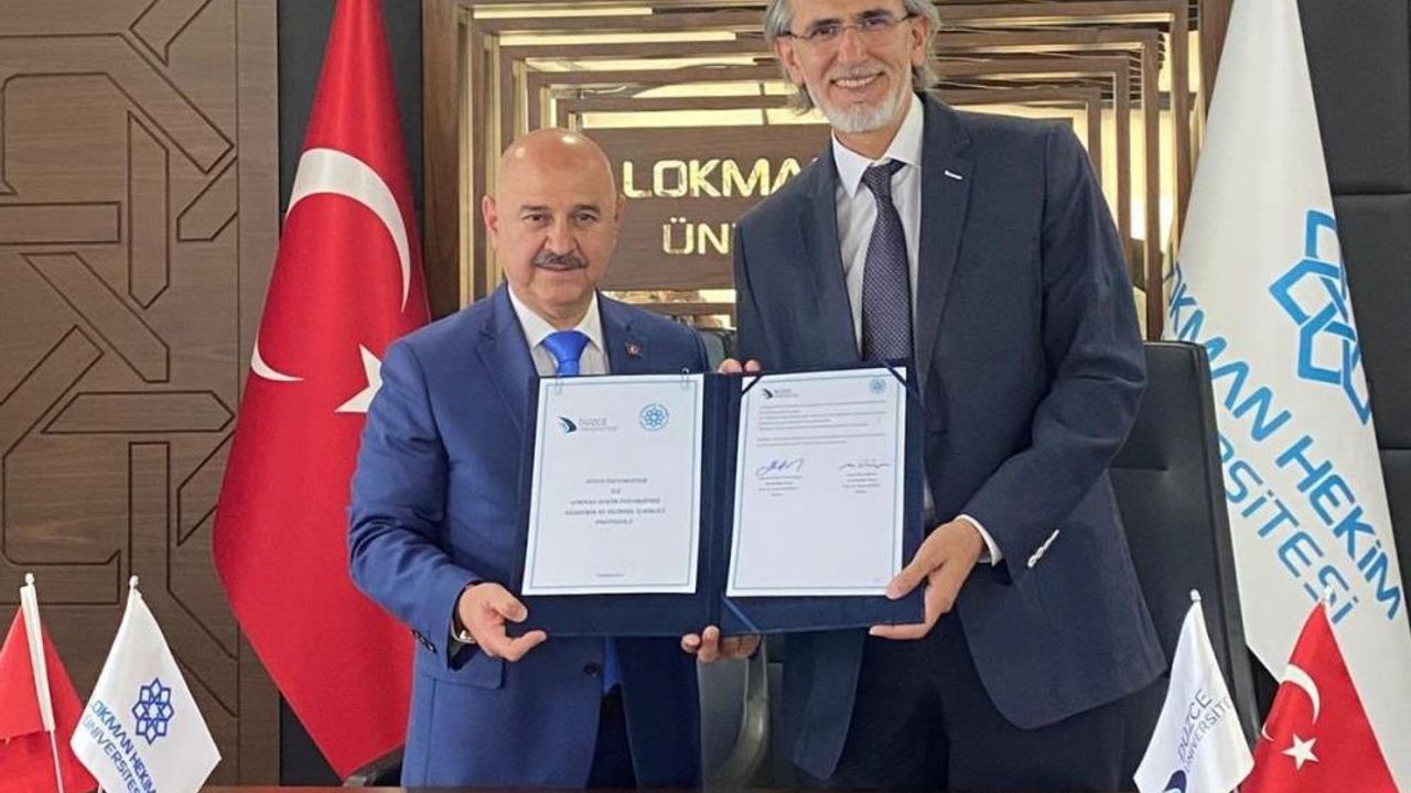 Lokman Hekim Üniversitesi’nde gerçekleştirilen imza töreninde iş birliği protokolünü Düzce Üniversitesi adına Rektör Prof. Dr. Nedim Sözbir, Lokman Hekim Üniversitesi adına ise Rektör Prof. Dr. Fatih Gültekin imzaladı.