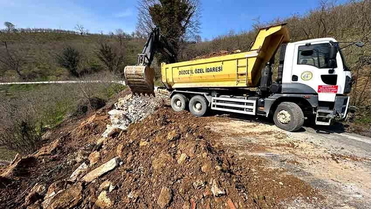 Düzce’nin Akçakoca ilçesinde heyelan nedeniyle zarar gören Tahirli ve Kalkın köylerini birbirine bağlayan grup yolunda yürütülen çalışmalar tamamlandı. İl Özel İdaresi ekiplerinin müdahalesiyle yol yeniden güvenli hale getirildi.