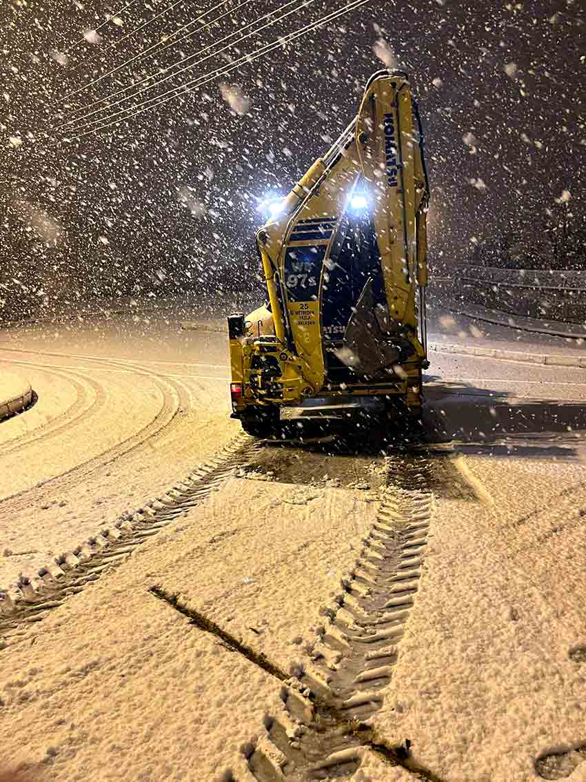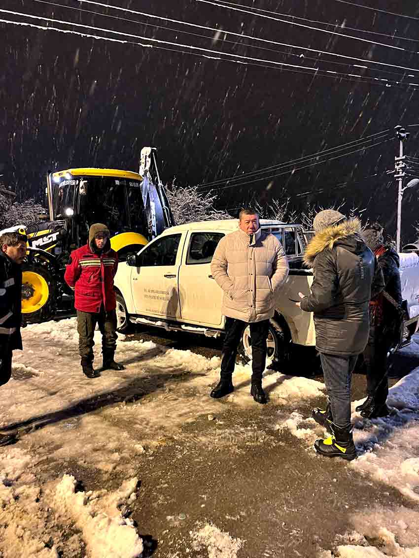 Belediye Başkanı Nuri Tekin, ekiplerin çalışmalarını sahada koordineli bir şekilde takip ederek, karla mücadele sürecinin hızlı ve etkin ilerlemesini sağlıyor.