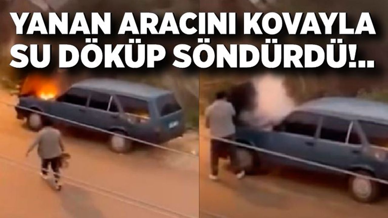 Panikle çevrede su arayan sürücü, bulduğu kovayı doldurarak alevlere müdahale etti. Kovayla su dökerek yangını kontrol altına almayı başaran sürücü, olası bir facianın önüne geçti.