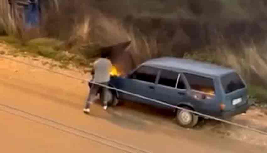 Bolu’da seyir hâlindeyken motor kısmı bir anda alev alan otomobilin sürücüsü, çevreden bulduğu kovayla su taşıyarak yangını kendi imkânlarıyla söndürdü.