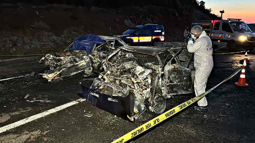 Olay yeri inceleme ekiplerinin çalışmalarının ardından araçta sıkışan cenazeler çıkartıldı.