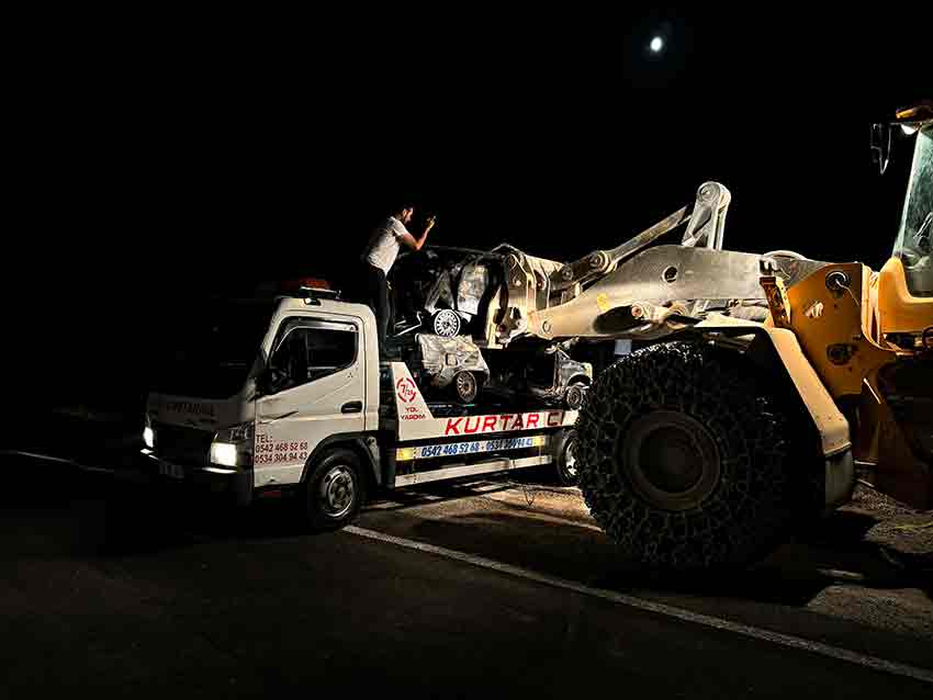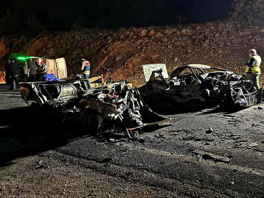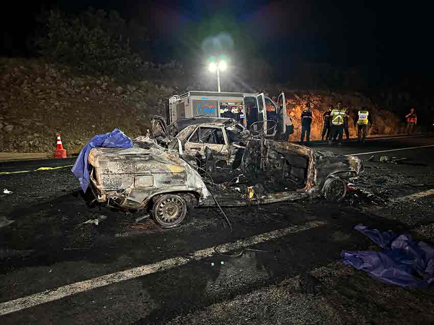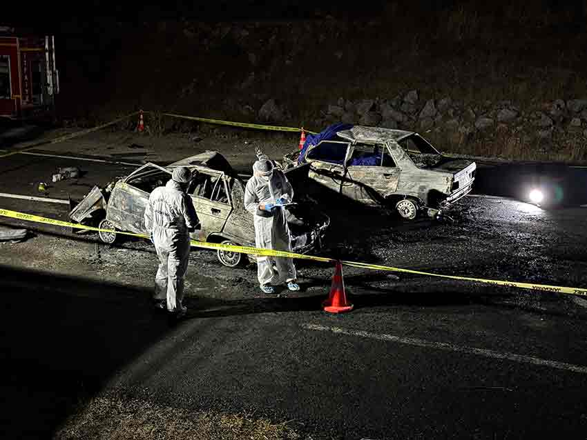 Alev alan araçlardan geriye demir yığınları kalırken, yaklaşık 3 saat trafiğe kapanan karayolu, araçların kaldırılmasıyla yeniden ulaşıma açıldı.