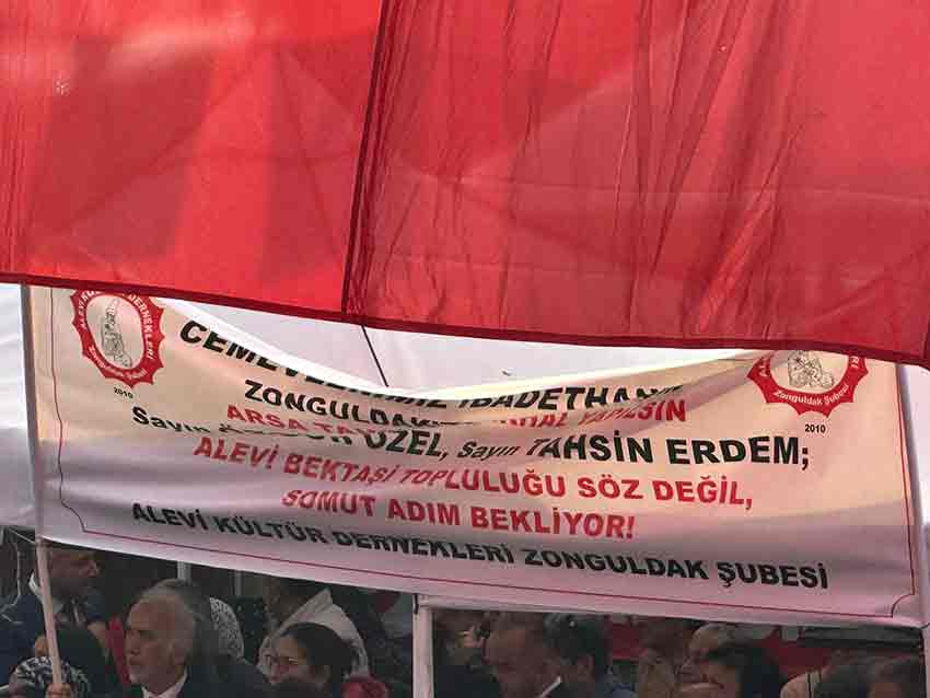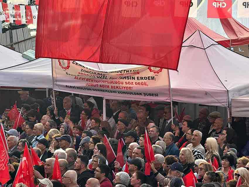 Alevi Kültür Dernekleri Zonguldak Şubesi, Cumhuriyet Halk Partisi (CHP) Genel Başkanı Özgür Özel’in Zonguldak mitingi sırasında dikkat çekici bir pankart açarak uzun süredir gündemde olan Cemevi talebini kamuoyu ile paylaştı.