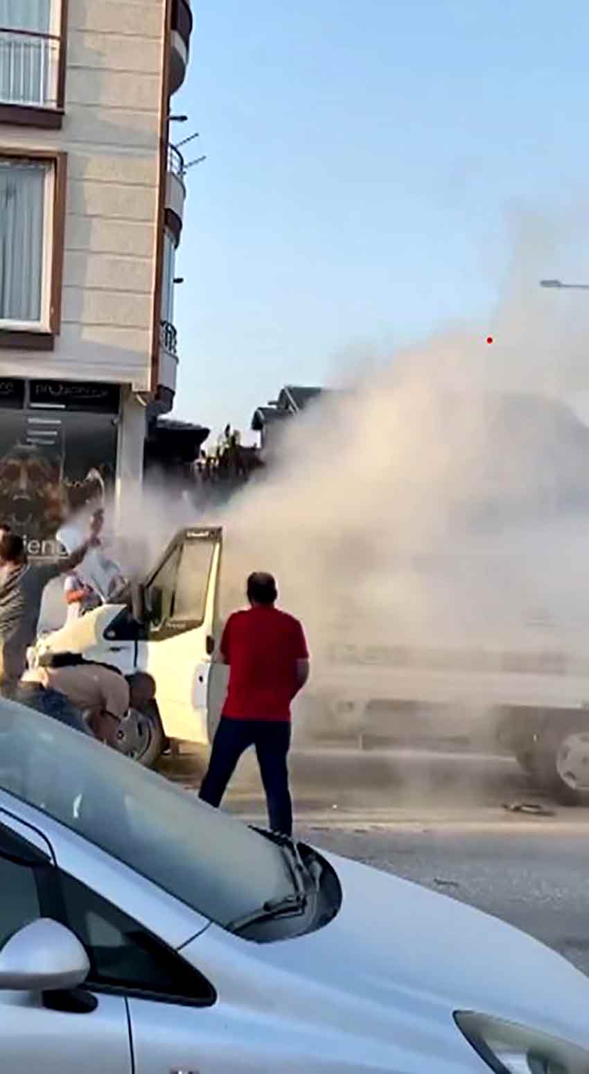 Vatandaş yardımcı olmaya çalıştığını fakat kola ile yangına müdahalenin yanlış olduğunu ifade eden esnaf Ayhan İnce, "Araç park halindeyken alevleniyor. Esnafımız yardımcı olmak için kola ile müdahale etti ama yanlış bir şeydi. Yangına yangın tüpüyle müdahale etmesi gerekiyordu. Kolanın içinde karbondioksit gazı var. Bu şekilde müdahalede yangını daha da çoğaltır. Halkımızın bilmediği bir durumdu ve yine de halkımız yardımcı olmaya çalıştı. Kola ile yangın söndürülmez. Vatandaşımız yardım etmeye çalışmış ama kola ile yangına müdahale olmaz" ifadelerini kullandı.