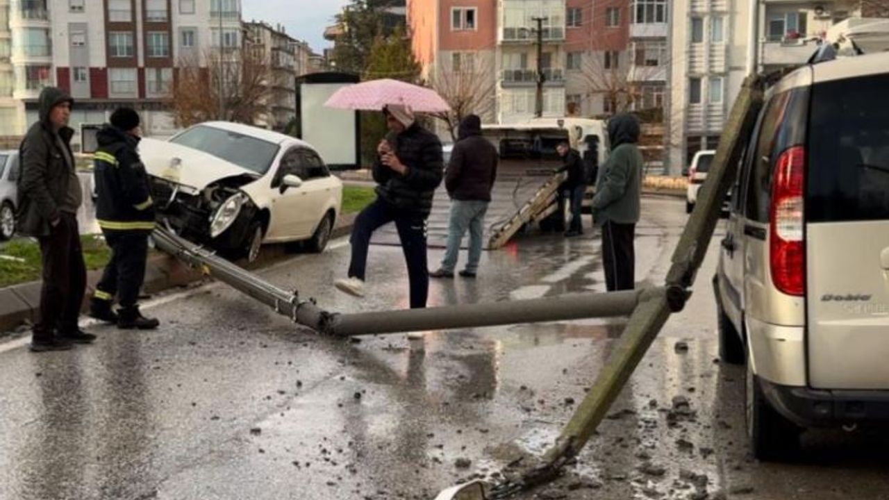 Hızını alamayan araç, refüjde bulunan elektrik direğine çarptı. Çarpmanın etkisiyle yerinden sökülen direk, park halindeki 22 AJ 343 plakalı otomobilin üzerine devrildi.