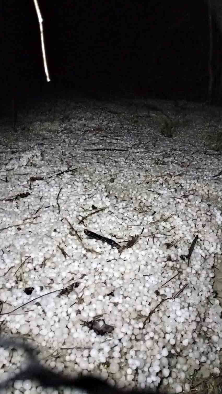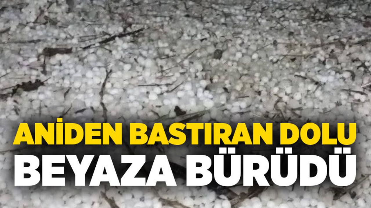 Dolu yağışı nedeniyle ilçedeki boş araziler ve yeşil alanlar, dolu taneleriyle kaplanarak adeta kar yağmış gibi beyaz bir görüntü oluşturdu.