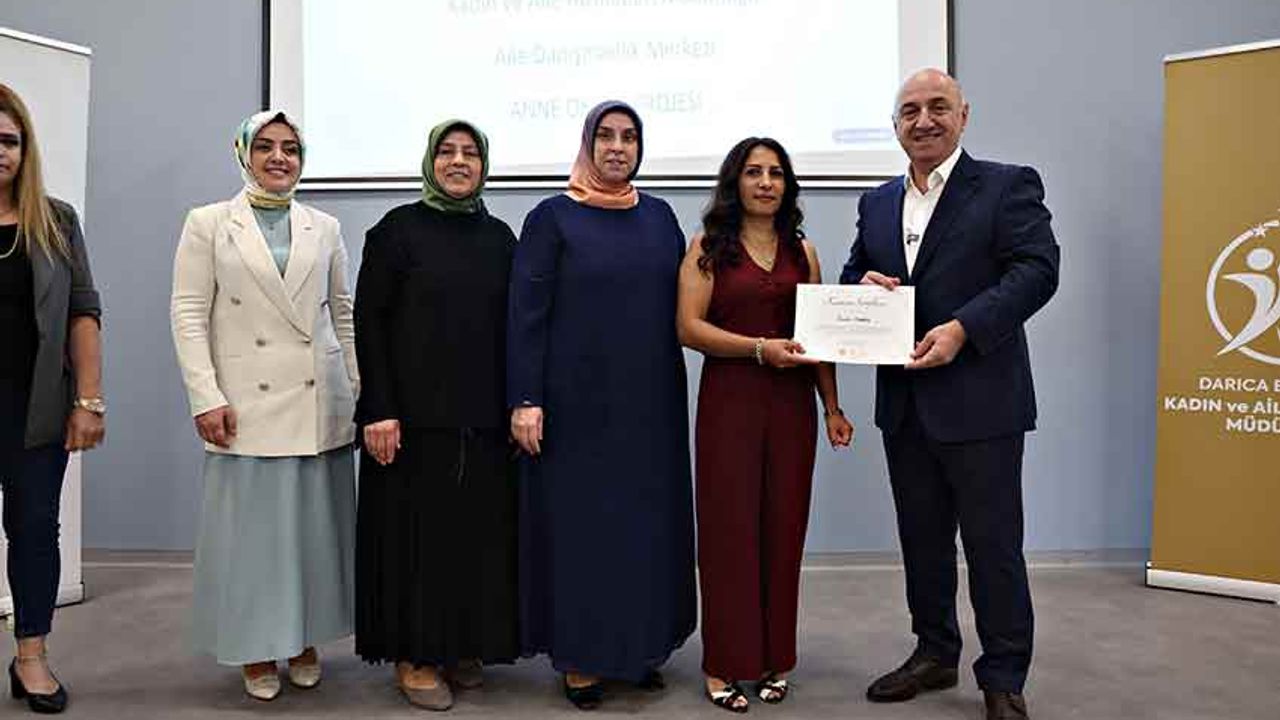 Cumhurbaşkanlığı tarafından ilan edilen 2025 Aile Yılı kapsamında Darıca Belediyesi'nin kadınlara yönelik başlattığı Anne Okulu projesi ilk mezunlarını verdi. Aile yapısını güçlendirmek, annelere rehberlik etmek ve toplumsal dayanışmayı artırmak amacıyla hayata geçirilen projede eğitimlerini başarıyla tamamlayan annelere sertifikaları, Darıca Belediye Başkanı Muzaffer Bıyık tarafından takdim edildi. Sertifika törenine Darıca Belediye Başkanı Muzaffer Bıyık ve eşi Havva Bıyık ile AK Parti Darıca İlçe Kadın Kolları Başkanı Sevgi Takan ile kursiyerler katıldı.