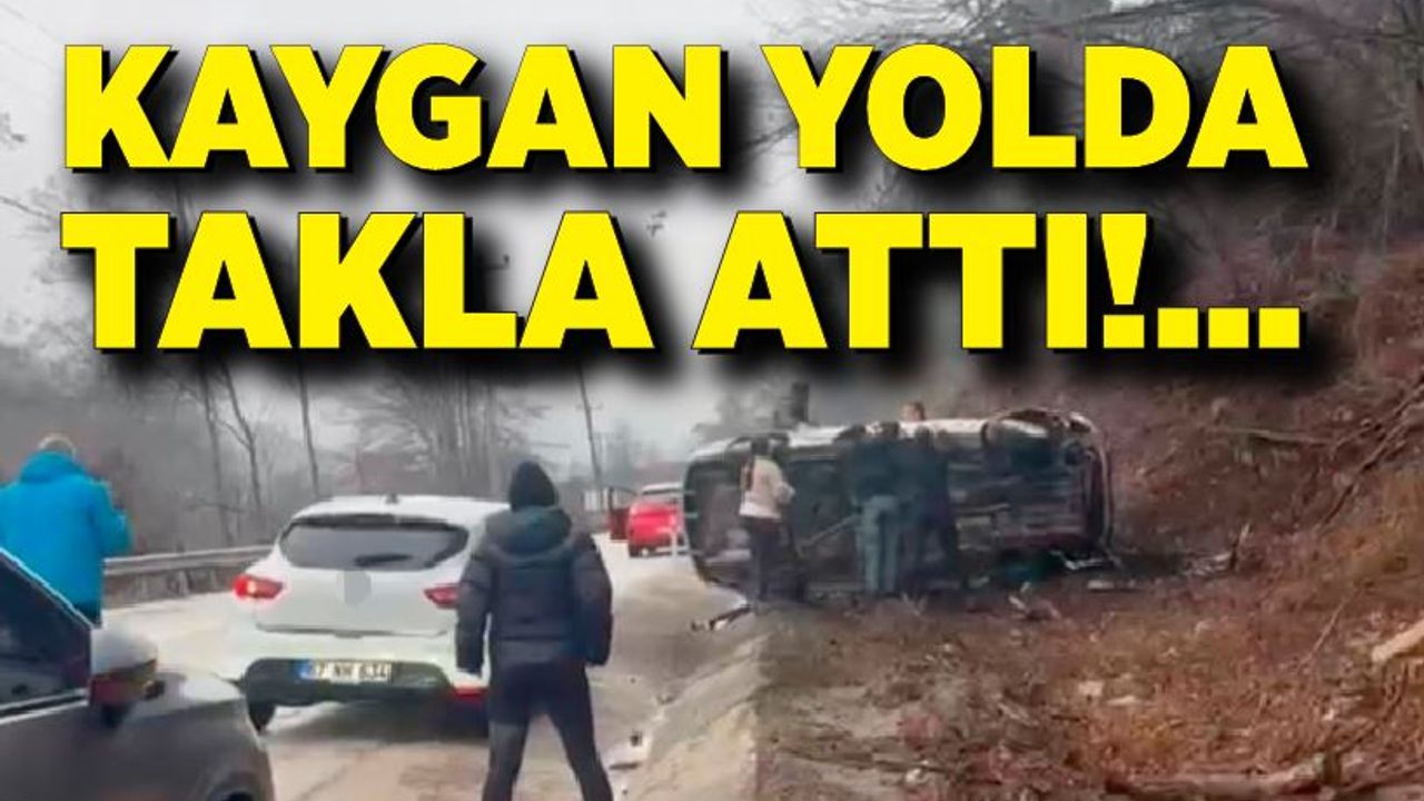 Bolu’da Abant Gölü Milli Parkı yolu Akçaalan mevkiinde, yağışlı hava nedeniyle kayganlaşan yolda bir otomobil kontrolden çıkarak takla attı.