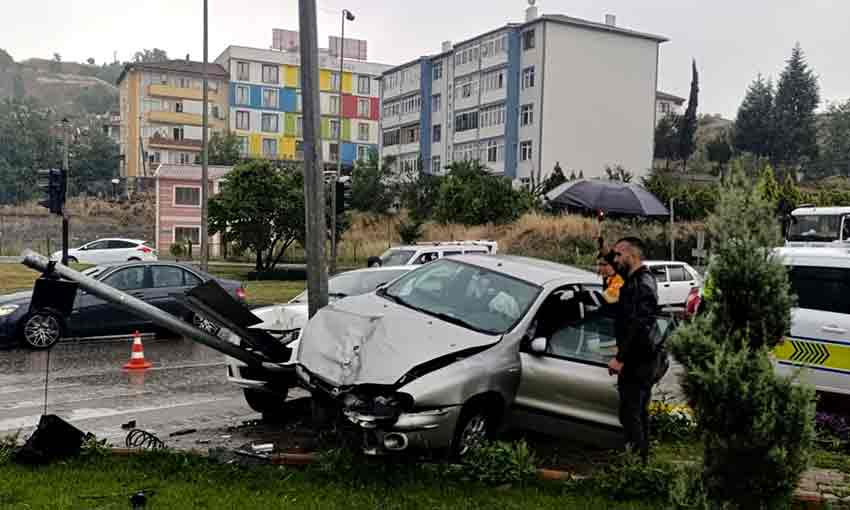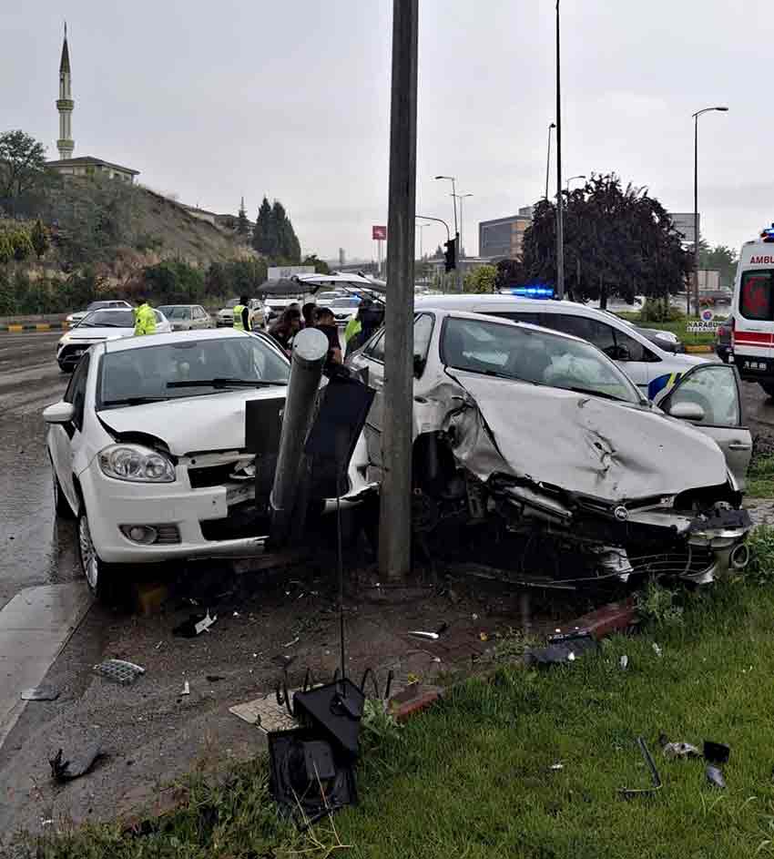 Kaza, Sanayi Kavşağı'nda meydana geldi. E.A. idaresindeki 14 AAE 030 plakalı otomobil, R.K. idaresindeki 78 AR 972 plakalı otomobil ile çarpıştı. Çarpışmanın etkisiyle her iki araç orta refüje savrularak aydınlatma direğine çarptı.