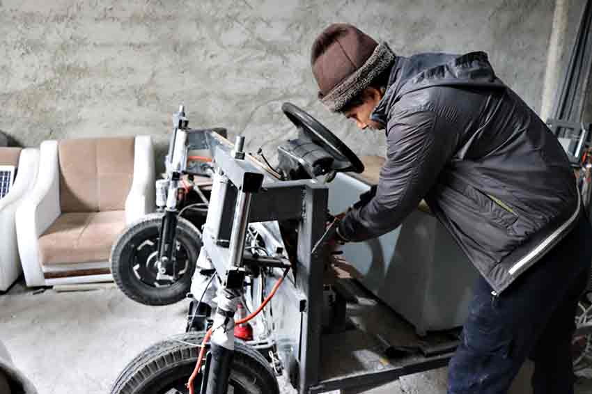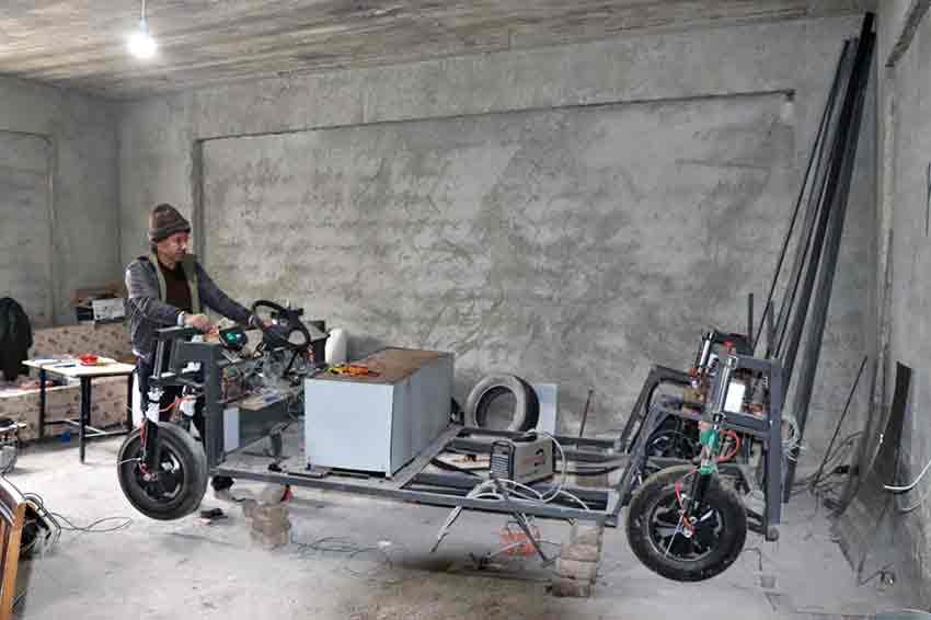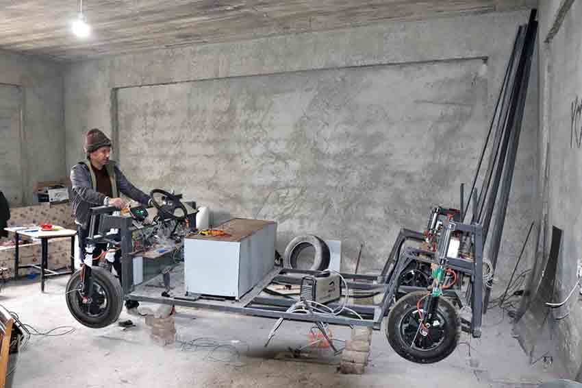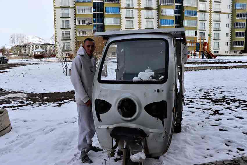 Erzurum’un Oltu ilçesinde bir asansör ustası, güneş panelli ve adına "otosiklet" dediği araçla dikkatleri üzerine çekti.