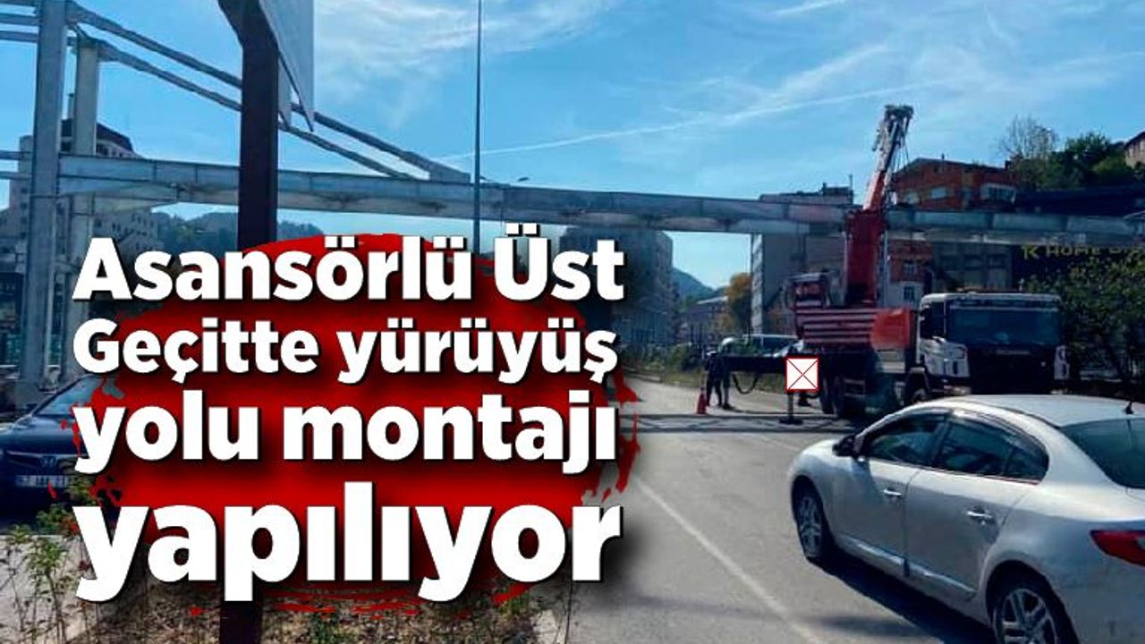 Zonguldak’ta trafiğin rahatlaması ve vatandaşların güvenli geçişini sağlamak amacıyla yapımı planlanan asansörlü üst geçidin montaj çalışmaları sürüyor. Yürüyüş yolu vinç yardımıyla montajı yapıldı