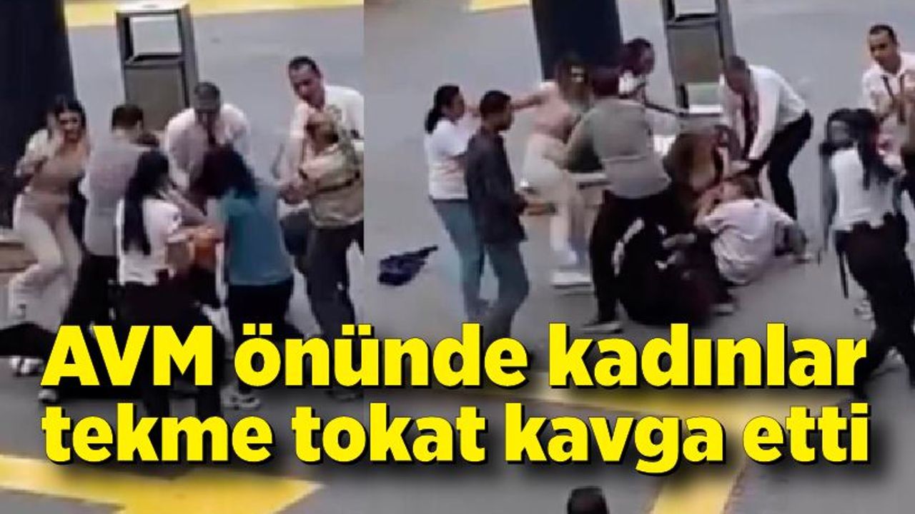 Mersin'de bulunan Forum Alış Veriş Merkezi önünde, kadınlardan oluşan iki grubun tekme tokat kavgası cep telefonu kamerasına yansıdı.