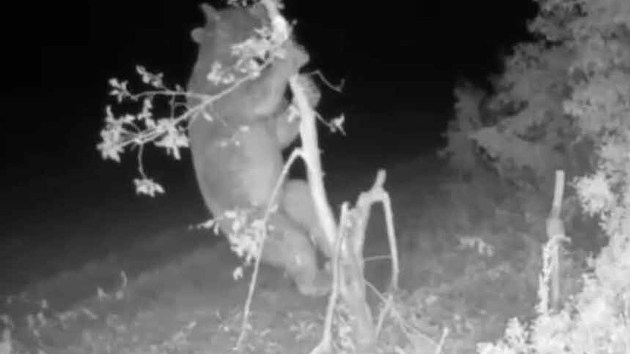 Kastamonu’nun Azdavay ilçesi Mehmetçelebi köyünde yiyecek arayan bir ayı, gece saatlerinde bir evin bahçesine girdi. Ayı bahçede gördüğü meyve ağacına tırmanarak meyveleri tek tek toplayarak yedi. Ayı meyveler için adeta ağacı talan etti. O anlar ise vatandaş tarafından bahçeye yerleştirilen güvenlik kamerasına yansıdı.
