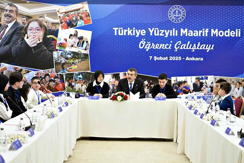 Ankara'da Mogan Mesleki ve Teknik Anadolu Lisesi Uygulama Oteli’nde 'Türkiye Yüzyılı Maarif Modeli Öğrenci Çalıştayı' düzenlendi. Çalıştaya Milli Eğitim Bakanı Yusuf Tekin ile birlikte öğretmenler ve öğrenciler katıldı. Programda 'Türkiye Yüzyılı Maarif Modeli'ne ilişkin hazırlanan tanıtım videosu izlendi. Bakan Tekin, "Biraz önce videoda izlediğiniz arkadaşlarımızdan bir tanesi milli ve manevi değerlerimize, atalarımıza saygı, toplumumuza saygı, birliktelik arzusundan bahsetti. Bizim bu milli ve manevi değerler içerisinde kastettiğimiz şey bu. Biz sizlerin bu değerlere sahip bir şekilde yetişmesini arzu ediyoruz. Müfredatımızın içerisinde de sizin bu anlamda bu değerlere sahip bireyler olarak yetişmeniz için tedbirler aldık. Müfredatımızın içerisine bu tür konularla ilgili size destek olacak, size yardımcı olacak, sizin milletinizi seven duygularınızı pekiştirecek ifadeler, etkinlikler, projeler yerleştirmeye çalıştık" dedi.