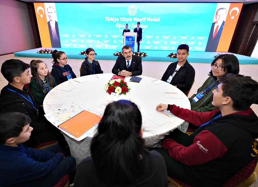 Bakan Tekin, konuşmasının ardından Öğrenci Danışma Kurulu üyeleriyle bir araya geldi. Öğrenciler, Bakan Tekin'e müfredata ilişkin görüş ve önerilerini aktardı. Bir öğrenci, Bakan Tekin'e Kaf Dağı’nda yaşayan 'Simurg kuşu' efsanesini anlatarak, bu süreçte maarif modelini hayata geçirmek için aldığı risklerin ve yaşadığı zorlukların farkında olduklarını söyleyip, "Siz bizim 'Simurg'umuzsunuz" dedi. Başka bir öğrenci de maarif modele ilişkin hazırladıkları dergileri Bakan Tekin'e hediye ederek, model sayesinde birçok etkinlik yapabildiklerini söyledi.