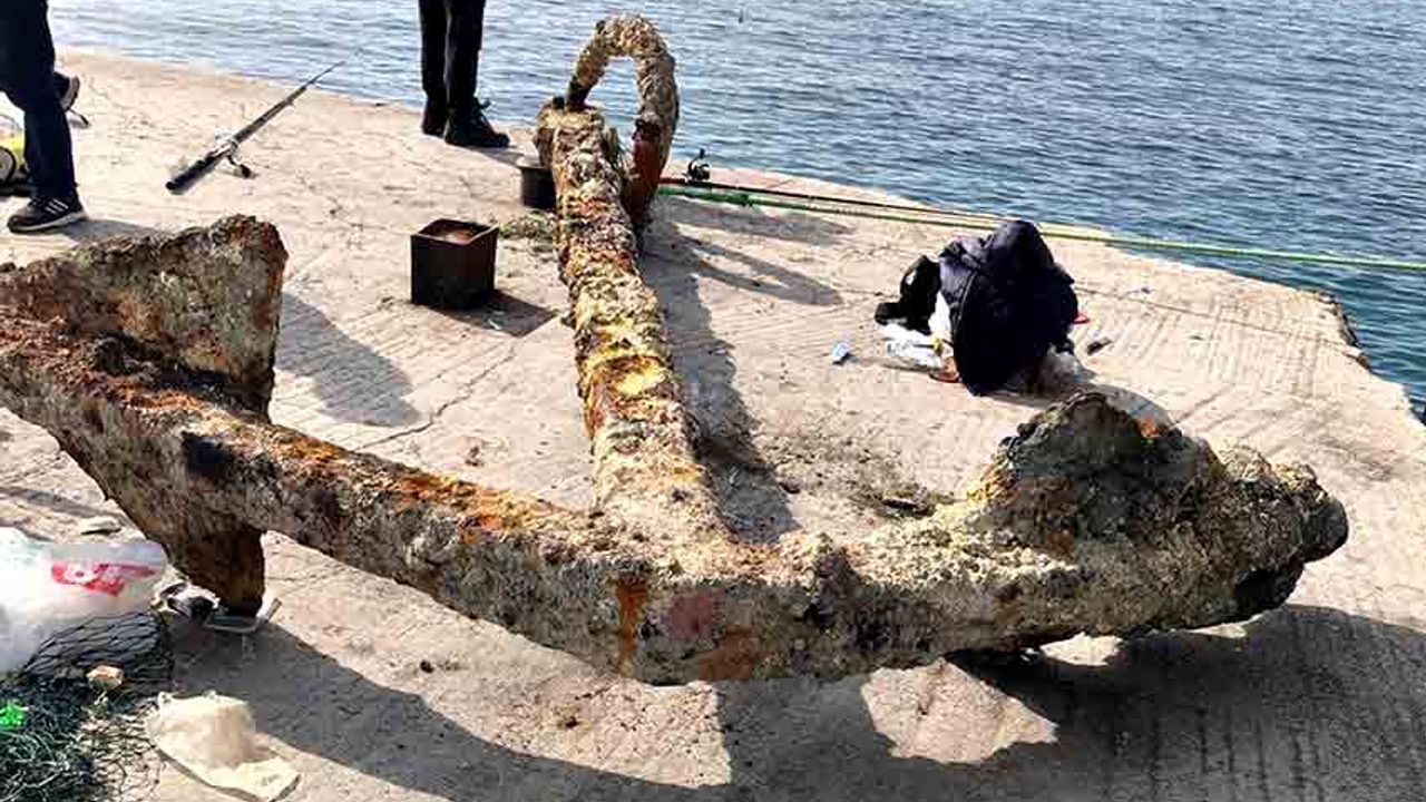 Ezine ilçesi Geyikli beldesi Odunluk İskelesi'nde Körfez adlı balıkçı teknesinin ağına yaklaşık 3 tonluk çapa takıldı. Ağlara takılan çapa balıkçılar tarafından iskeleye çıkarıldı.