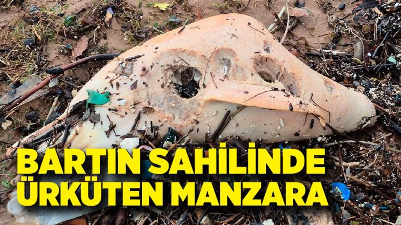 Bartın’ın Amasra ilçesi Bozköy Sahili, dev dalgalarla birlikte ölü bir yunus balığının kalıntılarına sahne oldu.