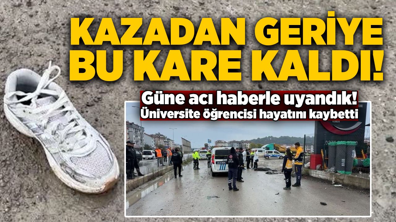 Kaza sonrası savaş alanına dönen yola otomobilin tekeri, araç parçaları ve ölen öğrencinin kıyafet ve çantasındaki eşyaları savruldu.