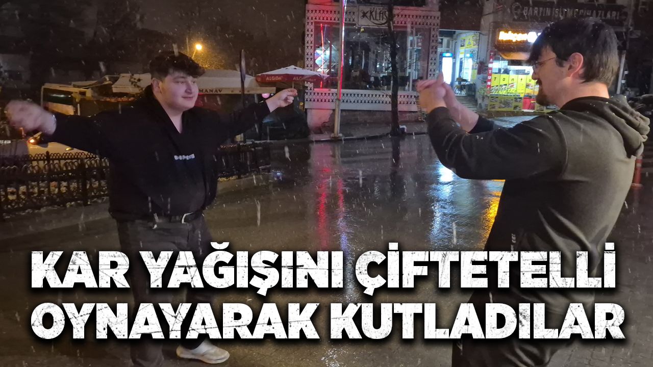 Bartın'da gece yarısı lapa lapa yağan kar, caddedeki gençleri sevindirdi. Kimisi yürüyüş yaparak, kimisi ise fotoğraf çekilerek kar yağışının keyfini çıkardı. İki genç ise oyun havası eşliğinde çiftetelli oynadı. Kar altında göbek atan atan gençler, şehir merkezinde ilk kez bu kadar güzel kar yağışı gördüklerini ifade etti.