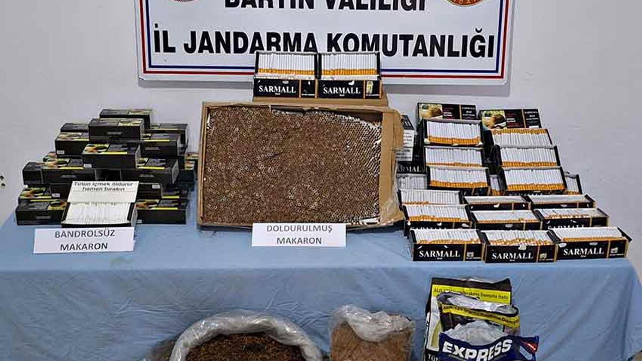 Bartın'ın Ulus ilçesinde bir iş yerine yapılan baskında 19 bin 466 adet makaron ve 7 kilogram kıyılmış tütün ele geçirildi.