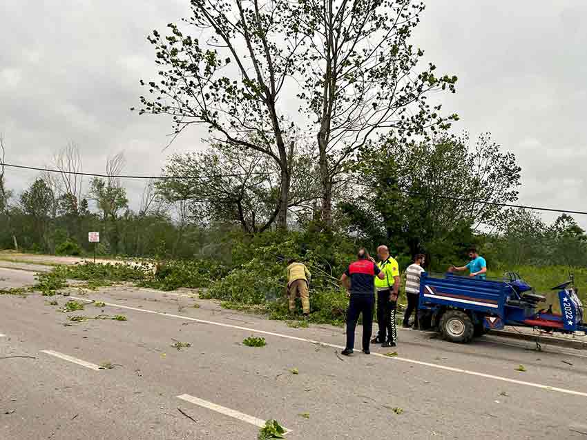 Devrilen ağaçlar nedeniyle polis, Karayolları ve belediye ekipleri alarma geçti. Gelen ihbarlar üzerine ağaç devrilmesi olaylarına müdahale eden ekipler, kısa sürede ağaçları yollardan kaldırdı. Fırtına devam ediyor.