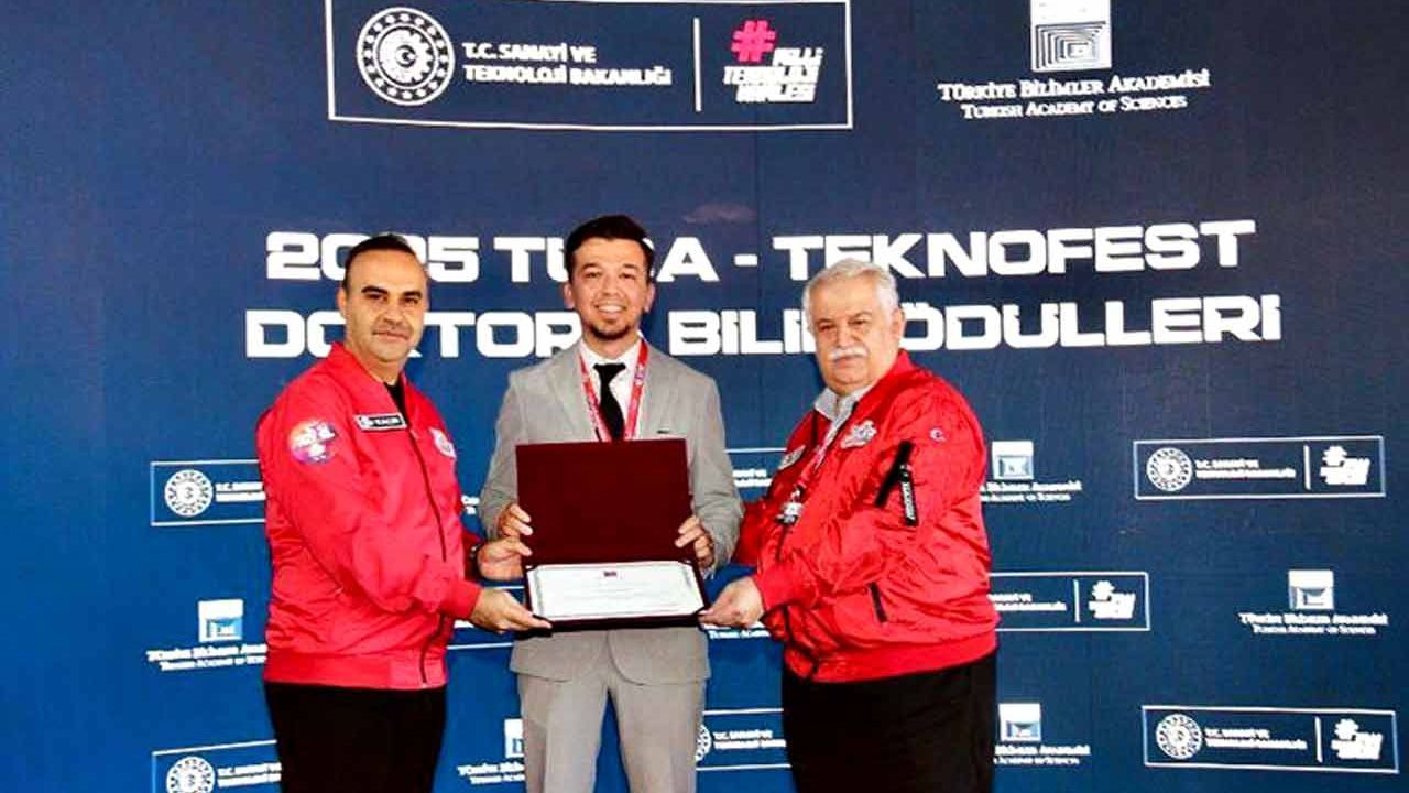 Dr. Öğr. Üyesi Samet Çelik'e ödülü, Sanayi ve Teknoloji Bakanı Mehmet Fatih Kacır ile TÜBA Başkanı Prof. Dr. Muzaffer Şeker tarafından verildi.