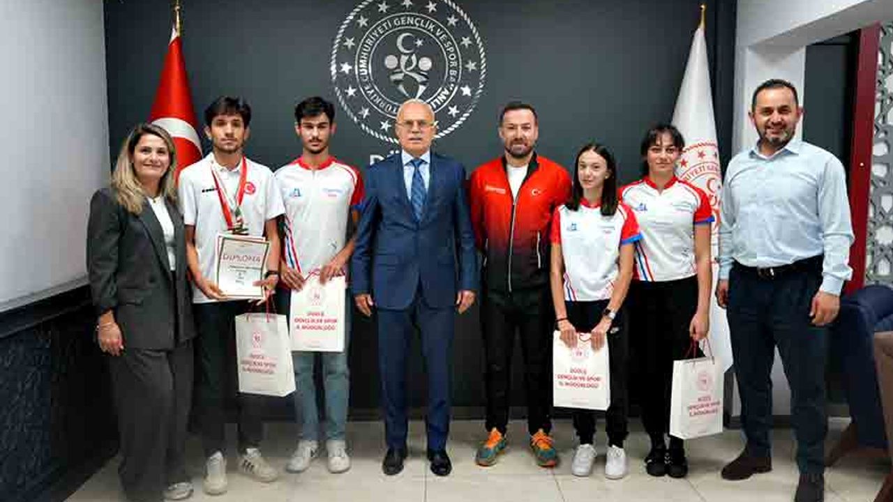 Başarılı sporcular katıldıkları şampiyonalarda elde ettikleri önemli derecelerle dikkat çekti. Türkiye Oryantiring Şampiyonası'nda takım birinciliği ve E18A Uzun Mesafe üçüncülüğü kazanan Altan Eren Ersoy, Güney Doğu Avrupa şampiyonasında bireysel dereceler ve takım bayrak yarışında ikincilik elde eden Muhammed Sadık Seydioğlu ve Analig Türkiye şampiyonluğu ile uzun mesafe Türkiye ikinciliği kazanan Zeynep Şeyma Arslan, başarılarını İl Müdürü Zekeriya Arslantürk ile paylaştı.