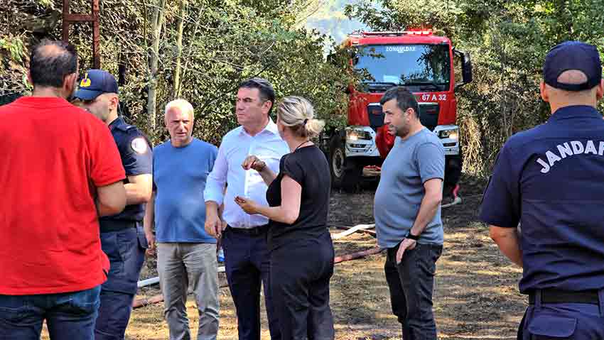 Yangın haberini alır almaz bölgeye giden Zonguldak Belediye Başkanı Tahsin Erdem ve Kozlu Belediye Başkanı Altuğ Dökmeci, söndürme çalışmalarını yerinde inceledi. Ekiplerin koordinasyonunu takip eden başkanlar, yetkililerden son durum hakkında bilgi aldı.