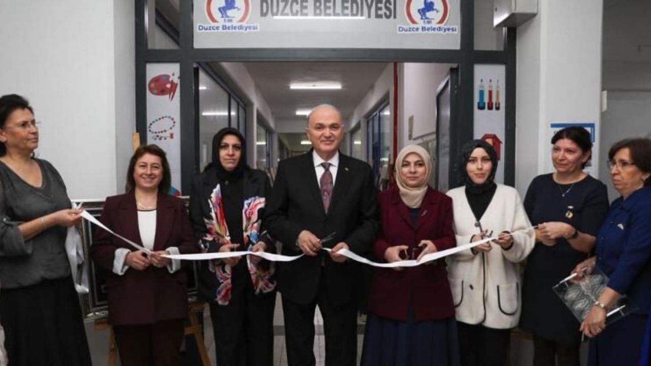 Düzce Belediye Başkanı Faruk Özlü, BELMEK Resim Branşı kursiyerlerinin hazırladığı “Atatürk’ün Işığıyla, Sanatın Yolunda” temalı serginin açılışına katıldı. Başkan Özlü, sanat faaliyetlerinin şehrin merkezinde yapılması için Millet Bahçesi 2’de fuaye alanı ve konser salonu oluşturacaklarını açıkladı.